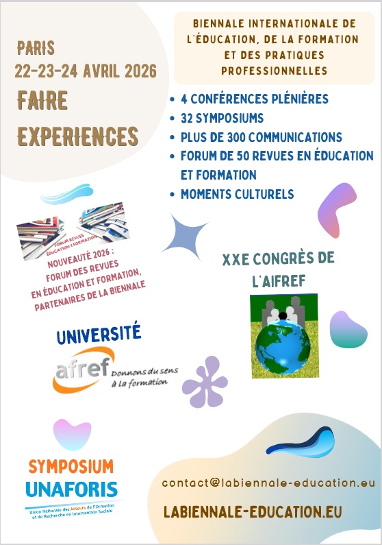 Nous accueillerons le XXe Congrès de l’AIFREF, l’Université de l’AFREF, le Symposium UNAFORIS et le Forum des revues en Éducation et Formation représentant quelque 50 revues partenaires de la Biennale.