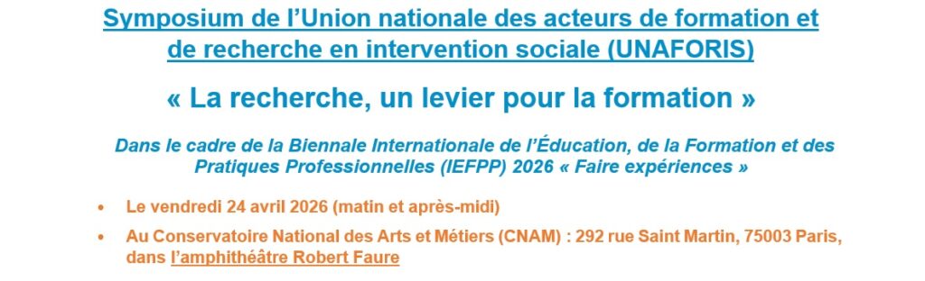 l’UNAFORIS organise un Symposium avec pour thème « La recherche, un levier pour la formation », le vendredi 24 avril 2026.