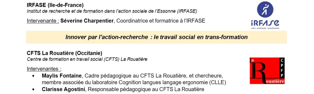 - Les pratiques professionnelles, les mutations de l’intervention sociale, les évolutions des modes d’accompagnement…